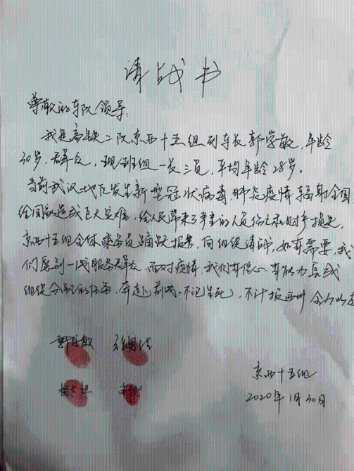 “疫情就是命令,防控就是責任?!备髦Р?、團員紛紛響應,自發(fā)提交請愿書、請戰(zhàn)書。