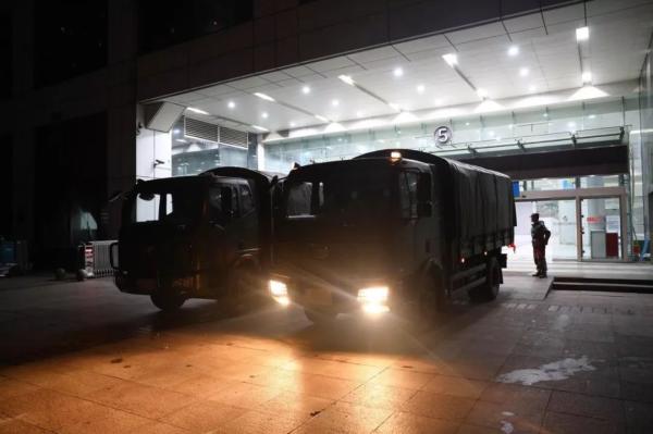 應(yīng)武漢市疫情防控指揮部請求,駐鄂部隊(duì)抗擊疫情運(yùn)力支援隊(duì)緊急調(diào)集50臺(tái)軍用運(yùn)輸車,兵分多路前往調(diào)運(yùn)倉庫裝載物資,爭分奪秒運(yùn)抵正在籌建的“方艙醫(yī)院”,并與工作人員一起卸載進(jìn)場。參加此次任務(wù)的官兵,白天在外為武漢各個(gè)網(wǎng)點(diǎn)配送生活物資,下午6點(diǎn)才陸續(xù)返回營地,休息不到3個(gè)小時(shí),就立即轉(zhuǎn)入“方艙醫(yī)院”物資搶運(yùn),返回時(shí)已是次日凌晨5點(diǎn)。官兵雖一夜未眠,但士氣依然十分高昂。