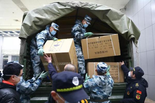 2月3日晚,駐鄂部隊(duì)抗擊疫情運(yùn)力支援隊(duì)組織官兵通宵達(dá)旦調(diào)運(yùn)物資,為武漢三座“方艙醫(yī)院”一夜之間建成提供有力支援。這是該運(yùn)力支援隊(duì)自抽組成立以來,首次執(zhí)行市民生活物資配送以外的運(yùn)輸保障任務(wù)。