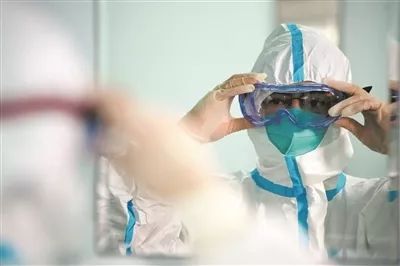 △ 近日,在華中科技大學(xué)附屬同濟(jì)醫(yī)院,一名醫(yī)護(hù)人員整理裝備,即將進(jìn)入隔離病房。