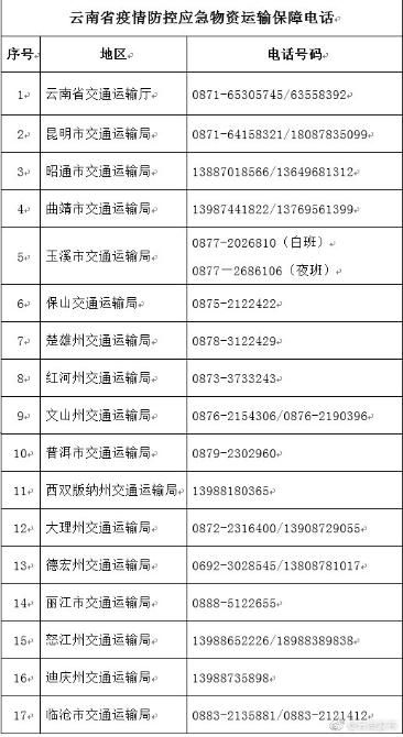 附:云南省疫情防控應(yīng)急物資運(yùn)輸保障電話、《新型冠狀病毒感染的肺炎疫情防控物資及人員運(yùn)輸車輛通行證》樣式(云南省交通運(yùn)輸廳)