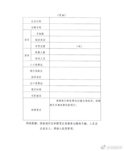 三是在收費(fèi)站開(kāi)通防疫物資“綠色通道”,對(duì)持有疫情防疫應(yīng)急物資和人員《通行證》的車輛全程免收通行費(fèi)。按照交通運(yùn)輸部要求,在疫情防控特殊時(shí)期,將重要生活物資納入應(yīng)急保障范圍,對(duì)辦理《通行證》不斷簡(jiǎn)化程序,由當(dāng)?shù)亟煌ㄟ\(yùn)輸主管部門根據(jù)疫情防控相關(guān)部門提出的需求,由運(yùn)輸企業(yè)自行打印填寫(xiě),隨車攜帶;