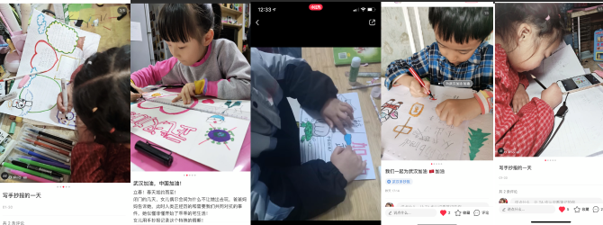 另一位用戶@舒老師 也曬出了幼兒園班上孩子們的手繪作品。視頻中,孩子們用圖畫表達了對醫(yī)護人員的尊重和感謝。