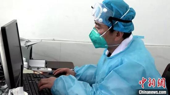 資料圖:西藏自治區(qū)第三人民醫(yī)院醫(yī)生記錄患者情況。 貢桑拉姆 攝