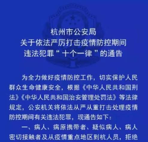 前兩天,杭州市公安局針對(duì)疫情防控,發(fā)布了一則通告,引發(fā)了不少討論。譚主注意到,通告上列了九種行為,一律追究刑事責(zé)任。其中之一是拒不配合地鐵站等公共場所量體溫。