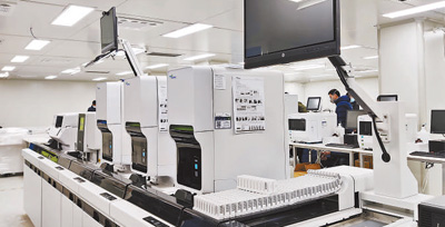 圖為雷神山醫(yī)院醫(yī)技樓的檢驗科室。