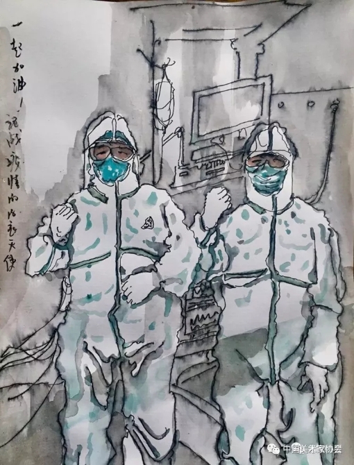 面對疫情,奮戰(zhàn)在一線的醫(yī)務(wù)人員、疾控工作者及建設(shè)者和工作人員,他們是救死扶傷的白衣天使,是億萬人民健康的守護(hù)衛(wèi)士,他們同樣是勇敢逆行的普通人,是不忘初心、牢記使命的踐行者。面對疫情,作為文藝工作者有責(zé)任創(chuàng)作出飽含正能量的美術(shù)作品,激勵(lì)和鼓舞人民,為廣大群眾正確應(yīng)對疫情增加力量。我們雖然不能去抗擊疫情的第一線,但我們可以拿起手中的畫筆,以筆作槍,創(chuàng)作出凝心聚力的美術(shù)作品,以積極的藝術(shù)創(chuàng)作投身到這場沒有硝煙的戰(zhàn)斗中,用美術(shù)作品凝聚起人民群眾抗擊疫情的強(qiáng)大精神力量,與全國人民一起共抗疫情。有愛不懼風(fēng)來急,風(fēng)雨過后是晴天!心手相牽,眾志成城,相信中國人民抗擊疫情的戰(zhàn)斗一定會(huì)取得勝利!為中國加油!為武漢加油!——?jiǎng)V