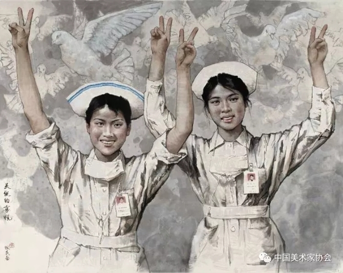 歌劇《江姐》中唱響的《紅梅贊》,它啟發(fā)了我的創(chuàng)作思路,那一個(gè)個(gè)白衣天使宛若巾幗英雄般矗立在我的眼前,做為一個(gè)畫家,用手中的畫筆謳歌時(shí)代的英雄是我的職責(zé),向奮戰(zhàn)在一線的白衣天使們致敬!——舒建新