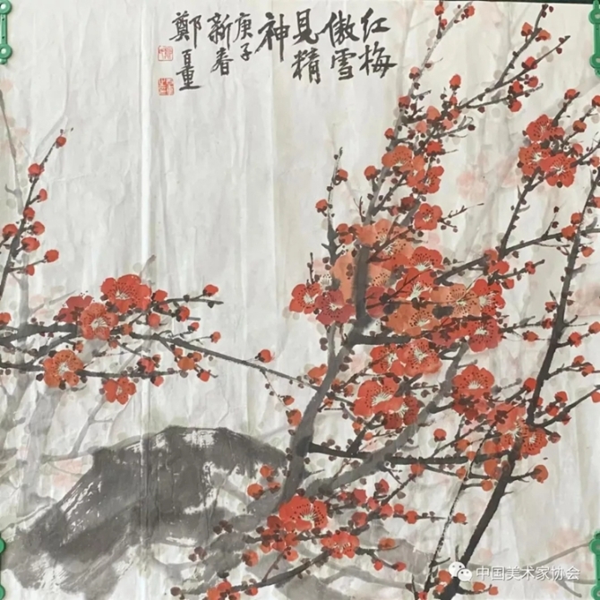 《紅梅傲雪見精神》 鄭百重 中國畫