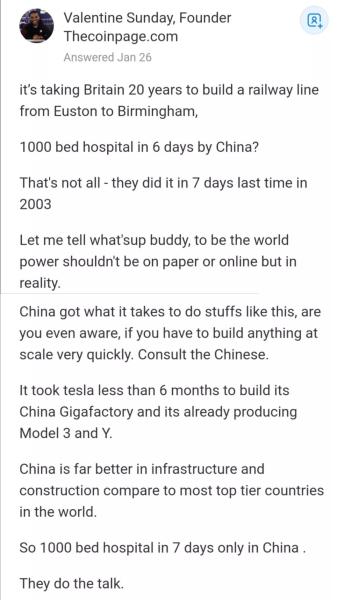 ? 英國建造從尤斯頓到伯明翰的鐵路花了20年,而中國,一座1000張床位的新醫(yī)院只要6天?