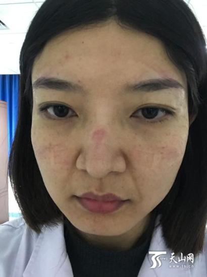 脫下防護(hù)服,劉雪梅的鼻梁和臉部都被口罩壓得紅腫。