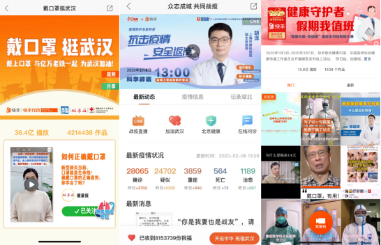 事實上,此次共同戰(zhàn)“疫”是“健康中國·快健康”計劃的深入實踐,在面臨突發(fā)公共衛(wèi)生事件時,快手平臺的“短視頻+直播”在健康傳播領(lǐng)域正發(fā)揮著巨大的價值。