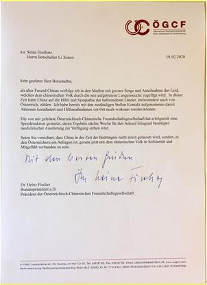奧地利前總統(tǒng)、奧中友協(xié)主席菲舍爾表示,“我們深信,只要各方團(tuán)結(jié)一致,共同努力,就一定能盡快控制疫情發(fā)展并最終徹底戰(zhàn)勝疫情。希望中國的醫(yī)務(wù)人員能取得勝利!祝你們一切順利!”菲舍爾還表示奧中友協(xié)已開始組織捐助活動,采購急需的醫(yī)療物資。