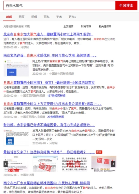 近日,不少群眾在微信群收到信息,稱“非常時(shí)期自來水加大了消毒劑氯氣的注入。在用水時(shí),特別是燒開水、煮飯用水要把水裝出來,最少靜置兩小時(shí)以上再用”。對(duì)此,中國搜索致電北京市自來水集團(tuán)熱線,證實(shí)此消息為謠言。