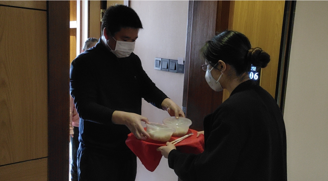 昆明信息港訊 通訊員趙玥 2020年2月8日正值元宵佳節(jié),上午一大早,在昆明市呈貢區(qū)的云楨花園酒店內(nèi),工作人員們將一碗碗熱氣騰騰的湯圓分別送到了在酒店居住的滯滇旅客、以及在酒店24小時值守的工作人員們手中,希望身在異鄉(xiāng)的旅客們能夠受感受元宵佳節(jié)的溫暖和問候,同時也為一直堅持值守的工作人員們加油鼓勁。