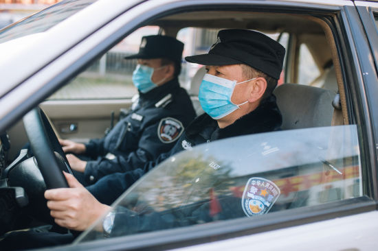 即使是有出警任務的民警帶的也是最普通的一次性口罩。