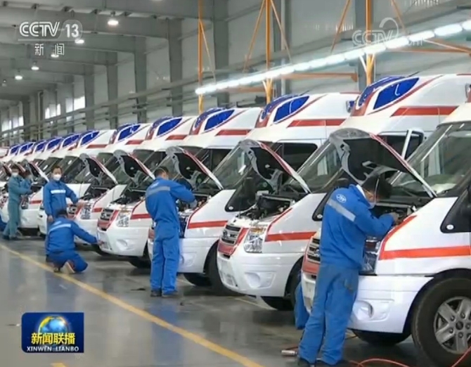 湖北急需的各類防控物資各地也在抓緊生產(chǎn),及時起運。安徽調(diào)動企業(yè),24小時加班加點為武漢的醫(yī)院生產(chǎn)醫(yī)護對講系統(tǒng)。江西專門組建保障湖北防疫物資的工作組,根據(jù)防控需求,每天召開調(diào)度會,部署企業(yè)生產(chǎn)。現(xiàn)在,江西每天可向湖北輸送20萬袋碳酸氫鈉和葡萄糖酸鈣注射液,負壓式救護車也以每天10輛的速度發(fā)往湖北。