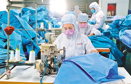 目前,中紡新材料每天產(chǎn)能可滿足約10000多件醫(yī)用防護(hù)服生產(chǎn)需要,面料一方面供給中國醫(yī)藥協(xié)助加工成衣,全力支援武漢市;另一方面,供給天津市本地醫(yī)用防護(hù)服加工企業(yè),確保屬地防疫需求。目前公司原材料儲備總產(chǎn)量可達(dá)100萬米,后續(xù)可根據(jù)生產(chǎn)需求繼續(xù)擴(kuò)大產(chǎn)能。