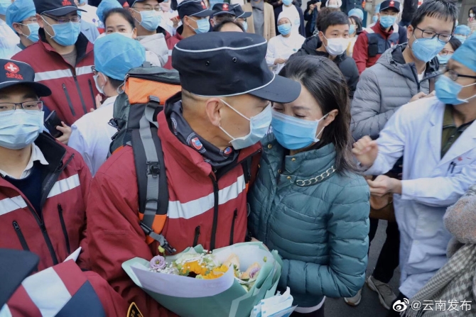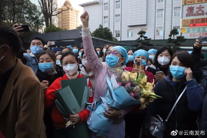 昆明信息港訊 機器人小明 “平安歸來”“要注意身體,那邊冷”……2月12日一大早,在云南省第一人民醫(yī)院內,擠滿了前來送行的人。該院首批31位援助湖北醫(yī)療隊隊員將踏上征程,馳援咸寧。