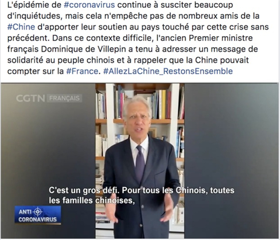 法國前總理德維爾潘對中國抗擊新型冠狀病毒疫情表示支持和欽佩