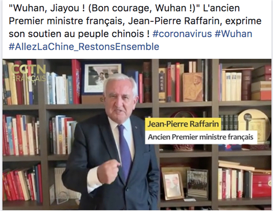 法國前總理拉法蘭表示,堅信中國人民一定能打贏這場戰(zhàn)“疫”