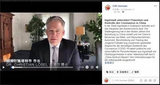 德國因戈爾施塔特市市長呂澤爾為中國祝福加油