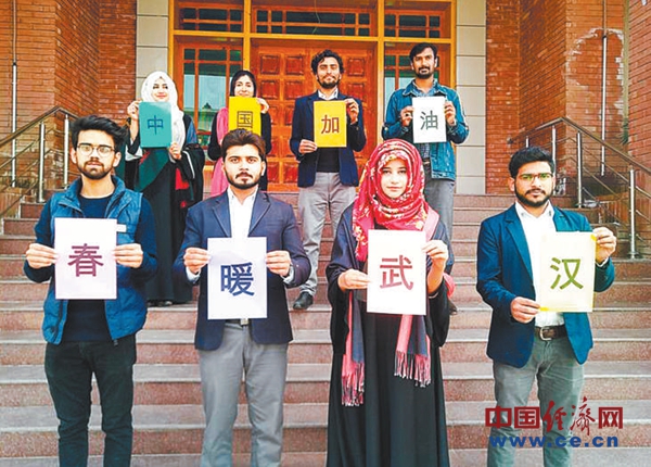 ?巴基斯坦薩戈達(dá)大學(xué)孔子學(xué)院師生打出“中國(guó)加油”“武漢加油”“巴鐵與你同在”等內(nèi)容的標(biāo)語(yǔ),并錄制視頻支持中國(guó)。經(jīng)濟(jì)日?qǐng)?bào)-中國(guó)經(jīng)濟(jì)網(wǎng)記者 梁 桐攝
