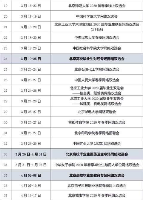 2020屆高校畢業(yè)生網(wǎng)絡(luò)雙選會系列活動部分場次安排表