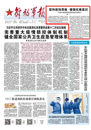 根據(jù)國家衛(wèi)健委最新數(shù)據(jù)顯示,全國除湖北以外地區(qū)每日新增的新冠肺炎確診病例,已連續(xù)多天呈下降態(tài)勢(shì),經(jīng)過艱苦努力,疫情形勢(shì)出現(xiàn)積極變化,防控工作取得積極成效。請(qǐng)關(guān)注今日出版的《解放軍報(bào)》的詳細(xì)報(bào)道——
