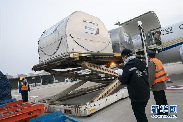 1月29日,在武漢天河機(jī)場(chǎng),工作人員將援助的物資卸下。 新華社記者 熊琦 攝