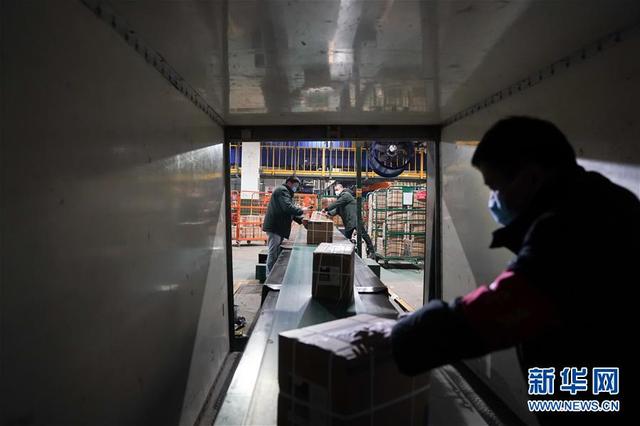 1月27日,武漢郵區(qū)中心局郵件處理中心的職工將物資裝車,準(zhǔn)備運(yùn)往目的地。 新華社記者 程敏 攝