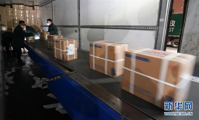 1月27日,武漢郵區(qū)中心局郵件處理中心的職工在卸貨分揀援助物資。 新華社記者 程敏 攝