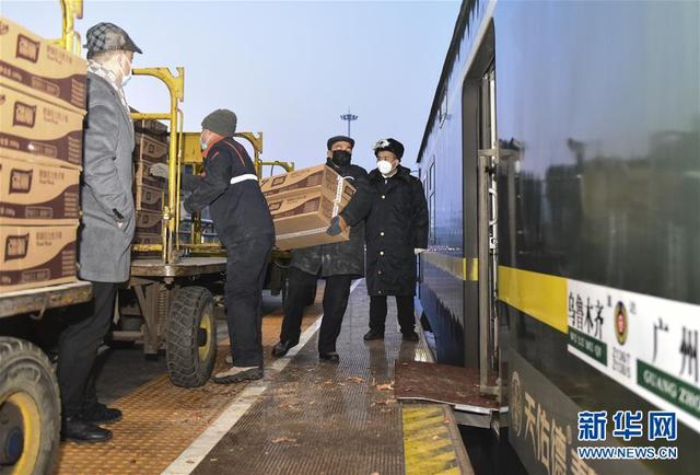 1月26日,在新疆烏魯木齊,鐵路工作人員將援助武漢的物資裝車。 新華社發(fā)(李維攝)