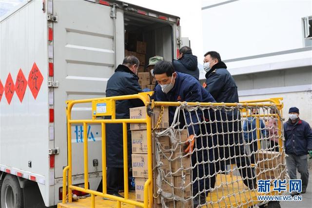 2月1日,在蘭州車站,中國(guó)鐵路蘭州局集團(tuán)有限公司工作人員在搬運(yùn)援助武漢的疫情防控物資。 新華社發(fā)(徐凌波 攝)