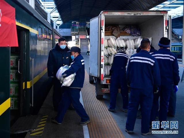 1月30日,中國(guó)鐵路青藏集團(tuán)有限公司工作人員在搬運(yùn)支援武漢的蔬菜。 新華社記者 張龍 攝