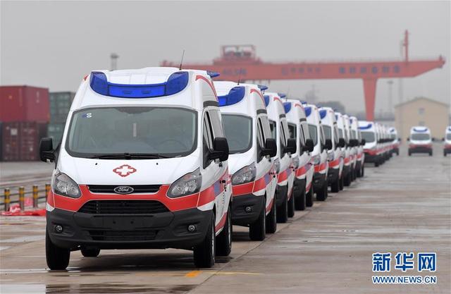 2月12日,在位于江西南昌縣的向塘鐵路物流基地,馳援武漢的負(fù)壓監(jiān)護(hù)型救護(hù)車等待駛?cè)雽A熊噹?新華社記者 彭昭之 攝