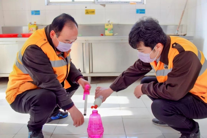 新冠肺炎疫情發(fā)生后,為防止作業(yè)期間發(fā)生群體性感染事件,張新超要求兒子張恒斌帶頭,嚴格執(zhí)行測溫制度。父子倆每天定時對辦公室、活動室等人員聚集場所進行消毒。