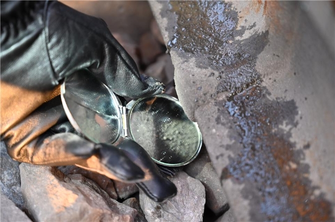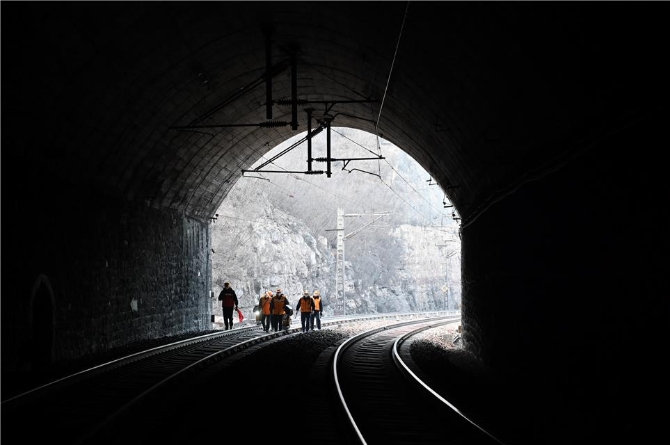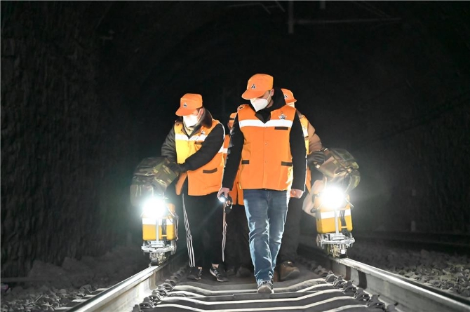 從早上6點(diǎn)半出發(fā),到中午12點(diǎn)半,黨員突擊隊(duì)們檢查了8公里鋼軌,發(fā)現(xiàn)了3處有傷損的鋼軌?!霸谶@里給鋼軌探傷不能和平原地段比,隧道里的光線不好,稍不注意就可能漏掉傷損,彎道上的鋼軌磨耗又很大,得仔細(xì)看,來(lái)不得絲毫馬虎?!惫鐒傉f(shuō)。