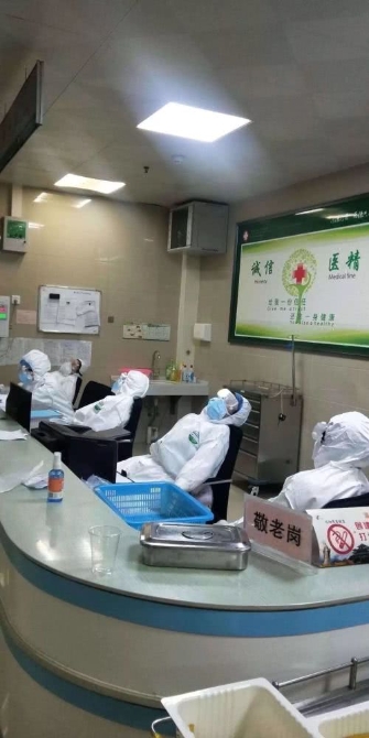 醫(yī)護(hù)人員在靠椅上短暫小憩