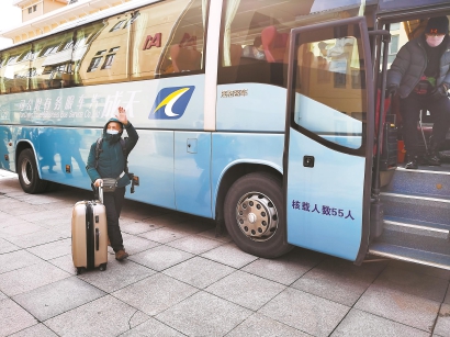 可能因?yàn)樽叩么颐?她沒(méi)有選擇無(wú)障礙通道,而是親手提起大行李箱,沒(méi)等醫(yī)護(hù)人員上來(lái)幫忙,就徑直下了臺(tái)階,直奔大巴。司機(jī)師傅幫助她將行李放入車艙底部,詢問(wèn)了她的目的地。待她上車坐定,全車緩緩開動(dòng),眾人紛紛與車外的醫(yī)護(hù)人員揮手道別。
