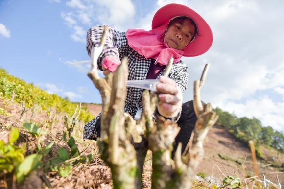 剪枝、嫁接……立春過后,在大理南澗無量山鎮(zhèn)可保村3200畝茶園里一片忙碌。村委會黨總支書記楊開泰和駐村扶貧工作隊發(fā)動群眾改造、嫁接白茶。鞏固脫貧成效,建立長效機制,讓貧困戶持續(xù)穩(wěn)定增收是重中之重。“當(dāng)前疫情防控是首位,可是農(nóng)業(yè)生產(chǎn)不能丟,大家一時不能外出務(wù)工,我們可以加強茶園管理?!睏铋_泰組織村民在茶園,分人、分批次進行白茶嫁接管理,每塊地里最多允許6個人同時開始工作并要求相隔幾米以上。在他的指導(dǎo)下,村民在做好自我防護的同時,迅速高效的開始自家的白茶嫁接工作,為白茶產(chǎn)業(yè)打好基礎(chǔ)。