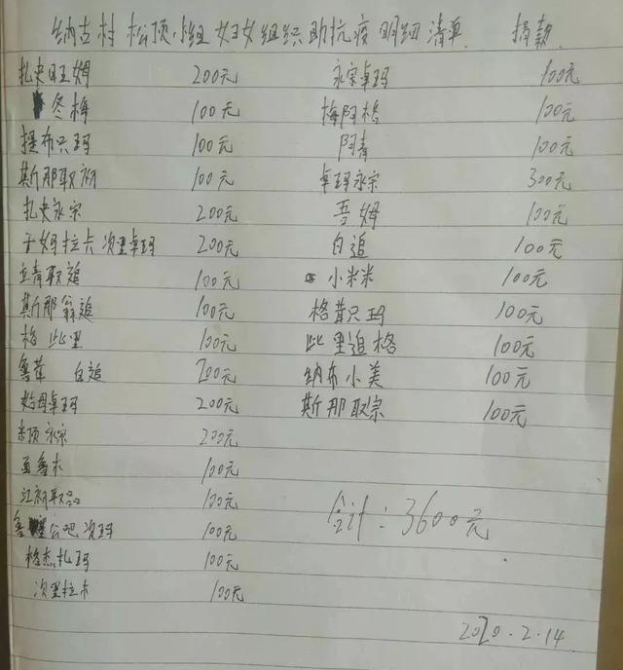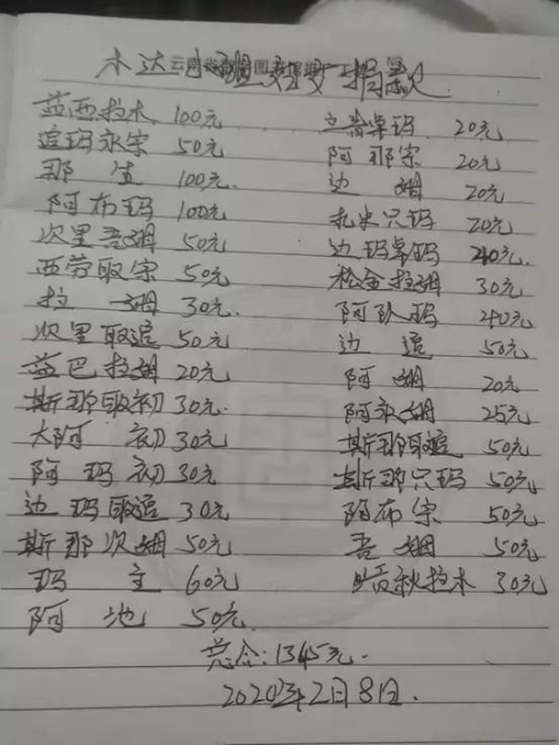 可她心中依然牽掛著戰(zhàn)斗在武漢最前線的白衣天使們,她說我們這里缺乏能夠供應(yīng)疫區(qū)白衣天使們的物資,那我們就捐款,每人拿出一點自己的心意,通過正當渠道匯給疫區(qū)姐妹,讓她們購買自己需要的物品,為前線的英雄們盡自己的一份微薄之力,村民們紛紛表示贊成,用半天時間就募集了14210元。