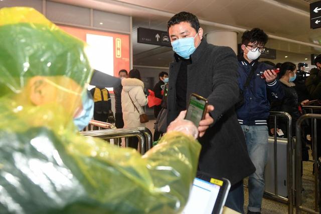 ↑在杭州東站,從貴州乘坐外地復(fù)工人員專列抵達(dá)杭州的復(fù)工人員出站時(shí)經(jīng)過紅外測溫儀(2月16日攝)。 新華社記者 黃宗治 攝