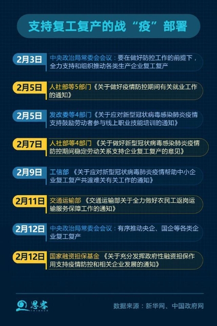 2月12日,中央政治局常委會(huì)會(huì)議提到了7次“生產(chǎn)”和3次“復(fù)工”。疫情防控關(guān)乎生命,復(fù)工復(fù)產(chǎn)關(guān)系生計(jì)。“抗擊疫情前線(xiàn)”和“經(jīng)濟(jì)發(fā)展前線(xiàn)”并駕齊驅(qū)。