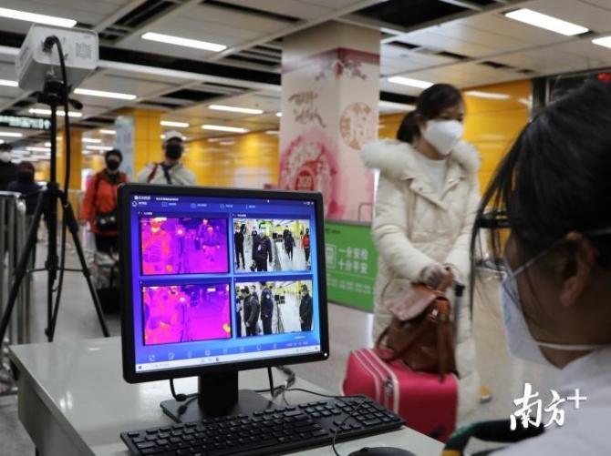為什么進(jìn)出火車站不需要用額溫槍測體溫?記者在廣州南站看到,該站在進(jìn)站口、到達(dá)口均設(shè)置了紅外體溫檢測儀,旅客經(jīng)過時(shí),一旁工作人員屏幕上會(huì)實(shí)時(shí)顯示旅客體溫。如果旅客體溫超過37.5度,工作人員會(huì)用額溫槍對旅客再次檢測,在確認(rèn)發(fā)熱和詢問流行病學(xué)史后,發(fā)熱旅客會(huì)被送到廣州南站西門外的醫(yī)療點(diǎn)。