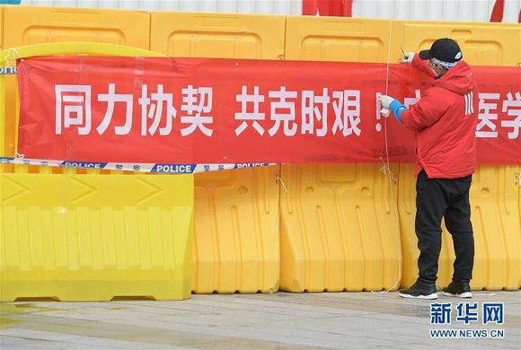 今天,武漢客廳方艙醫(yī)院B區(qū)床位準備就緒,為病人設(shè)置了飲水處、微波爐以及輪椅。我們不僅需要做實驗,也要自己做一部分后勤工作,今天我們自己在方艙醫(yī)院外面掛標語條幅,有點恐高的我不得不在找不到梯子的情況下爬到四米多高的P3實驗車上,沒想到掛標語的時候被新華網(wǎng)的記者拍到了,有些意外,也有些驚喜。