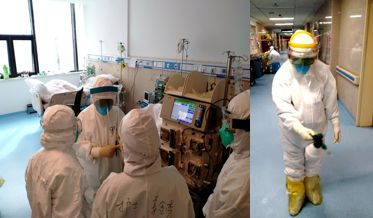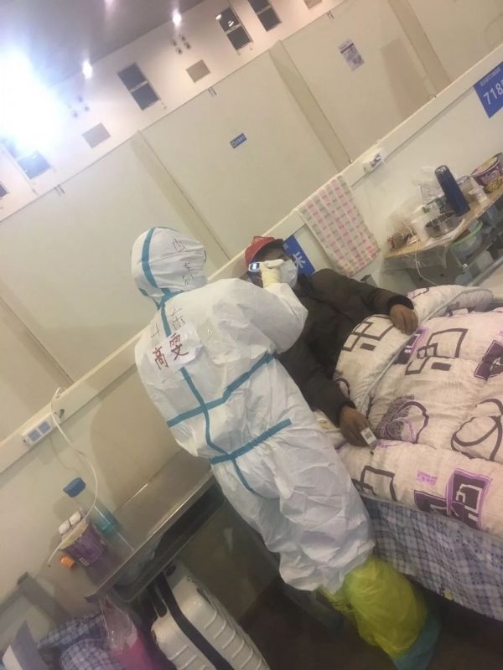 講述者:唐曉培 北大醫(yī)療魯中醫(yī)院血液風(fēng)濕科護(hù)士2020年2月11日 周二 陰 武漢第6天早上6:30我們坐上班車,7:10到達(dá)武漢客廳方艙醫(yī)院,7:15開始穿防護(hù)服,今天的護(hù)目鏡是84消毒水浸泡過的,還沒有晾干,帶上之后雙眼被消毒水熏得睜不開眼睛,疼得直流眼淚,感覺非常不舒服,同伴也出現(xiàn)了類似的問題,眼淚已經(jīng)把消毒水沖洗干凈存在護(hù)目鏡里,消毒水的味道熏得有點(diǎn)惡心頭暈,6個小時的工作下來,不知道是淚水還是汗水,只覺得護(hù)目鏡里模模糊糊的全是霧狀。進(jìn)入艙里與同事交接班,給還沒有吃早飯的患者發(fā)放早飯,測量生命體征,血壓。今天A區(qū)有178個病人,我們4個人護(hù)理大約70個患者,我負(fù)責(zé)的一名患者65歲,出現(xiàn)了喘憋呼吸困難,值班醫(yī)生立刻給予轉(zhuǎn)院,密切觀察患者的生命體征,10分鐘后救護(hù)車到達(dá)醫(yī)院協(xié)助患者轉(zhuǎn)走。11:10午餐來了,發(fā)午餐牛奶時,患者看到我們發(fā)飯很辛苦,也對我們說你們吃吧,你們吃吧,我們卻鼓勵患者,你們好好吃飯增加抵抗力,加油加油!早日康復(fù)!身上的汗水流下來,視線一直處于模糊中,活動后的我呼吸困難,頭暈。這個時候我的小伙伴瑞瑞出現(xiàn)了頭暈惡心,已經(jīng)不能工作,我協(xié)助他在護(hù)士站里休息,就這樣我們繼續(xù)做我們下一步的工作發(fā)藥,與患者交談,協(xié)助他們解決生活中的一些小問題。到了下班的時間我們出艙,這個時候瑞瑞的眼睛通紅脹痛,急忙聯(lián)系了醫(yī)生給予用藥處理。到達(dá)酒店已經(jīng)是下午4:00的時間,洗澡,好好的吃頓飯,晚上總結(jié)今天的工作。從早上出門到回酒店整整10個小時的時間,我們在這10個小時里不吃不喝不尿,居然我都能做到。