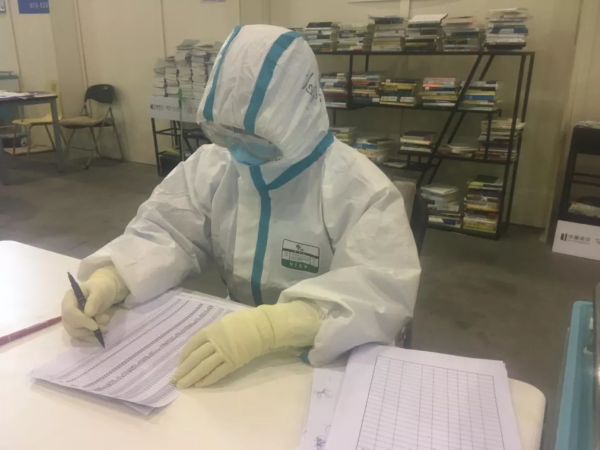 2020年2月9號 12:30我收到了第一次進(jìn)艙的任務(wù)!我們進(jìn)艙啦!中午還沒有吃完飯,就收到了隊長安排進(jìn)艙的通知,我們五個人:唐曉培,高雯,陳琳琳,王睿,王泗元。因為是隨時待命,所以我們提起物品就走了。經(jīng)過四十分鐘的車程,到了地方以后換好衣服就進(jìn)艙了。一開始,病人們?nèi)朐罕容^急切,工作剛開始,并沒有經(jīng)過過多培訓(xùn)的我們就在慌亂中接崗了,經(jīng)過分工,我們開始有序開展工作。我們負(fù)責(zé)B艙,里面又分為AB兩個廳,男女是分開的。經(jīng)過六個小時奮斗,我們AB廳接收了218個病人。方艙里的病人大多客氣,聽從安排。極少數(shù)用我們不懂的語言著急的需要醫(yī)生護(hù)士的幫助。看到他們,我才覺得生活是多么不容易,以前的簡單日子是多么幸福。整個工作過程中,防護(hù)服里熱了冷,冷了又熱,一層一層的汗把里面的衣服都濕了一遍,耳朵上被口罩勒的像刀割一樣疼痛,可是當(dāng)病人有需要的時候,我們又義無反顧的,忘記了這些不適,一旦為他們服務(wù)起來,責(zé)任與使命驅(qū)使我們前進(jìn)。下班回賓館的路上,眼淚不自主的流著,不是因為自己多么累,而是覺得病毒無情,讓這么多人患病,讓這么多家庭變得支離破碎!我一定要通過自己的努力去讓他們恢復(fù)健康!疫情不散,我們不走!大家一定要加油啊!