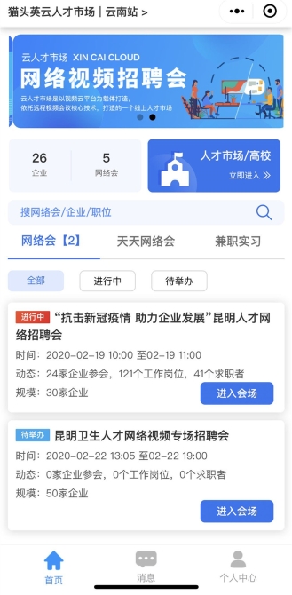 招聘者可以打開昆明人才招聘考試網(wǎng)(www.kmrcjob.cn)查找已開設(shè)的“昆明市2020年春季網(wǎng)絡(luò)公益專場招聘會視頻面試專區(qū)”,或通過微信搜尋“云人才市場”,切換“云南站”后,在編輯好完整的簡歷之后,就可以投遞簡歷、在線面試等功能;用人單位同樣可以使用網(wǎng)站及小程序?qū)崿F(xiàn)職位發(fā)布、遠程視頻面試及發(fā)放復(fù)試邀約等功能。