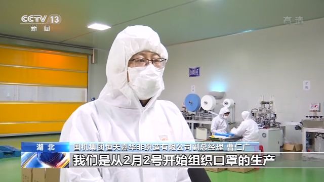 國(guó)機(jī)集團(tuán)恒天嘉華非織造有限公司副總經(jīng)理 曹仁廣:我們是從2月2日開始組織口罩的生產(chǎn),那我們就緊急協(xié)調(diào)我們的生產(chǎn)線,還有廠房以及設(shè)備,我們的口罩產(chǎn)能達(dá)到了100萬(wàn)片每天。